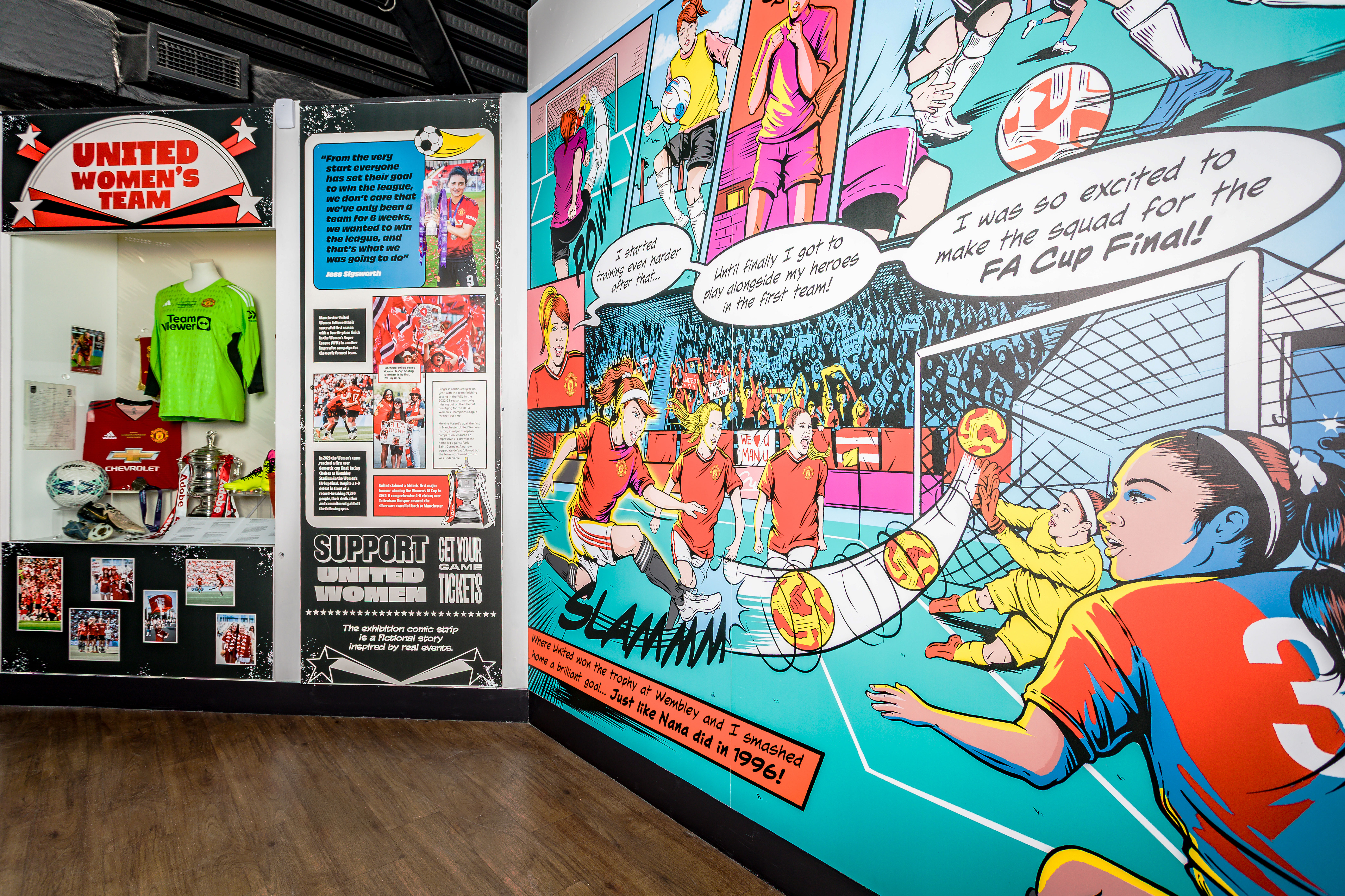 A fictionalised walk-though comic based on real-life experiences that showcases the history of the womens’ teAm at Man United’s Old Trafford exhibition space.